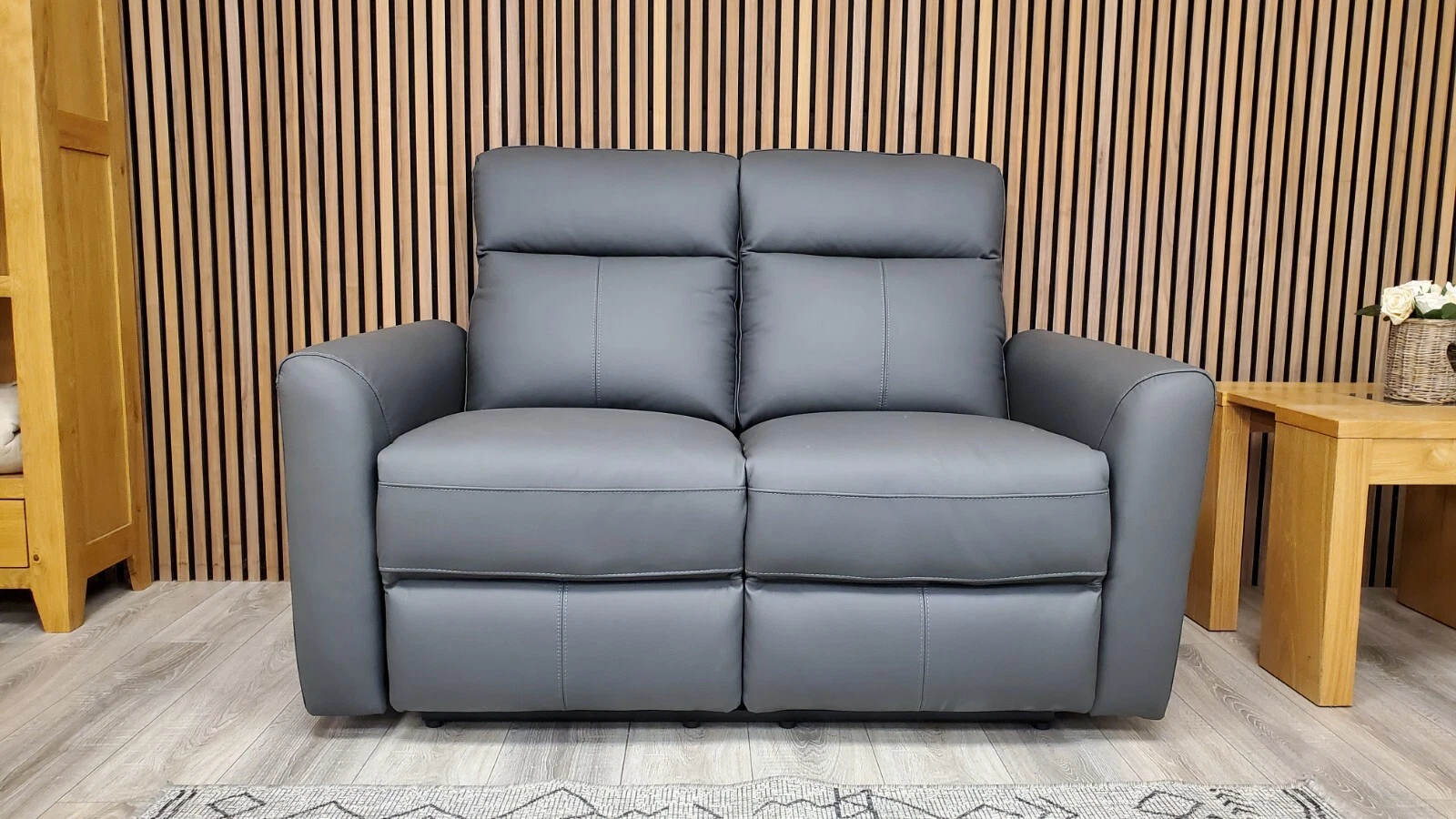 The stunning ‘Dakota’ sofa range. Presented here in a beautiful modern 2 seater sofa, upholstered in high quality durable 100% leather seats and back cushions with a leather match sides and reverse, the Dakota sofa comes equipped with handy manual recliners on the end seats allowing you to relax with one smooth movement! Grab this sofa at an absolute bargain price compared to the RRP of £1299.00! Available to view in our showroom in Parkgate, Rotherham S62 6JE & Drakehouse Sheffield S20 7HT With nationwide Delivery available within 2-4 weeks!